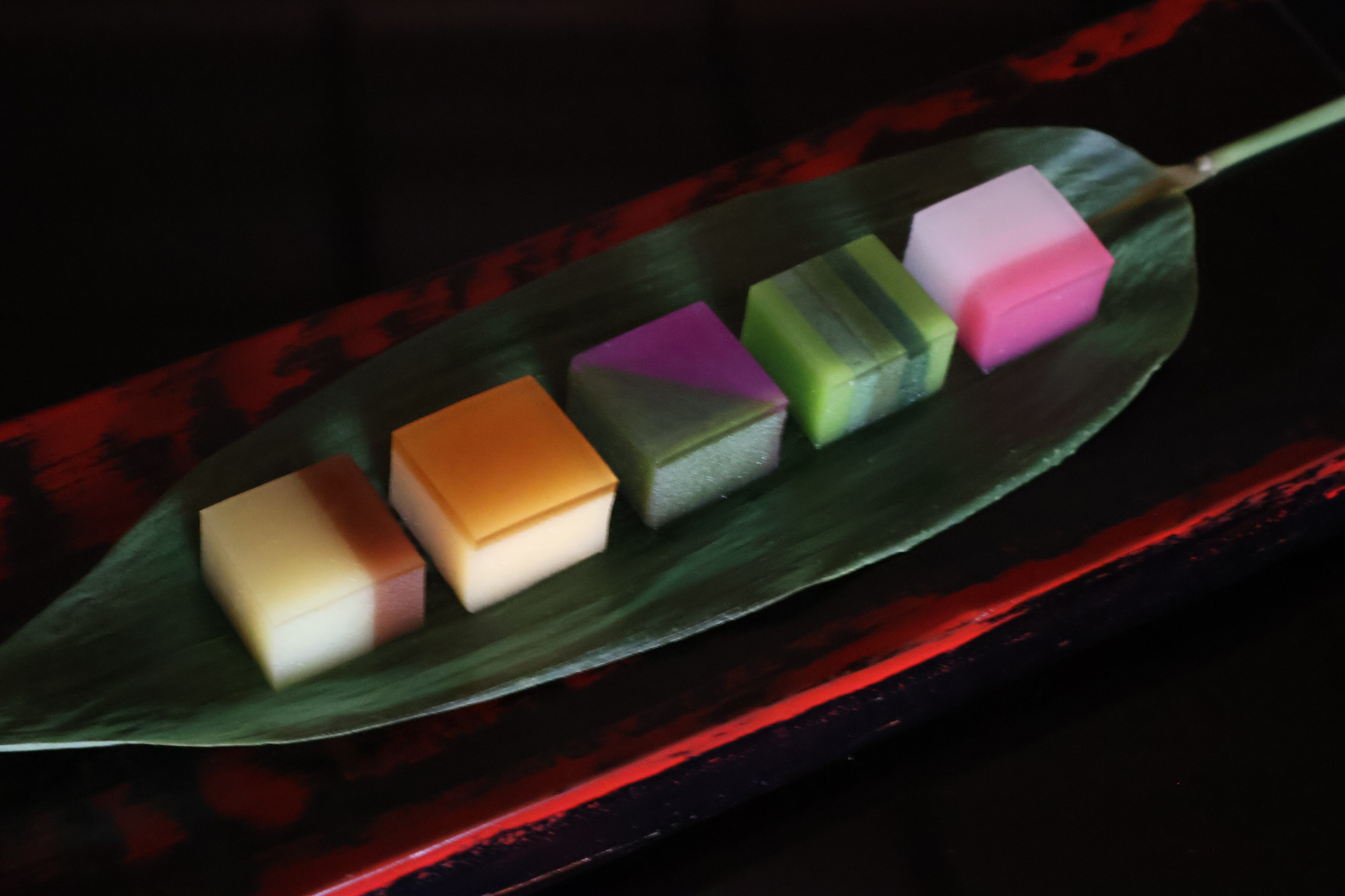 平安王朝のかさね色にならい、自然の食材の色をかさねることで季節を表しています。